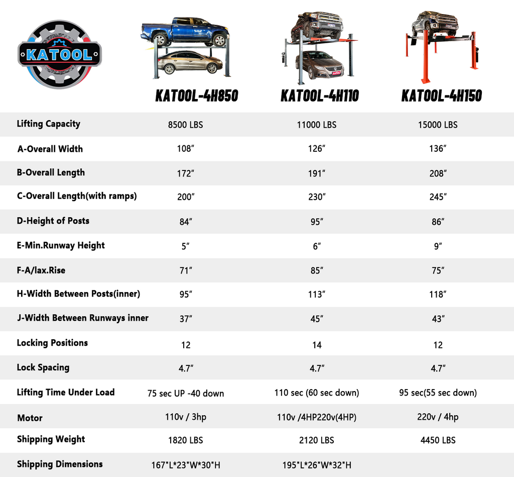 KT-4H150 Heavy Duty 4-Post Alignment Lift 15,000lbs. Rolling Jack Included
