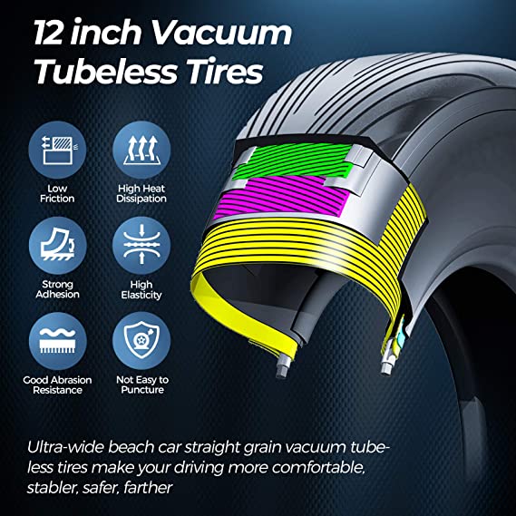 [PREMIUM COMFORT] The Hydraulic shock Fork and rear spring steel shock suspension are fully adjustable. Thanks to lower foot position and higher handlebar height, riders will enjoy a more upright and relaxed riding position on the SoverSky electric scooter. Besides the 12Inch tubeless fat tire decrease the risk of puncture and brake distance.