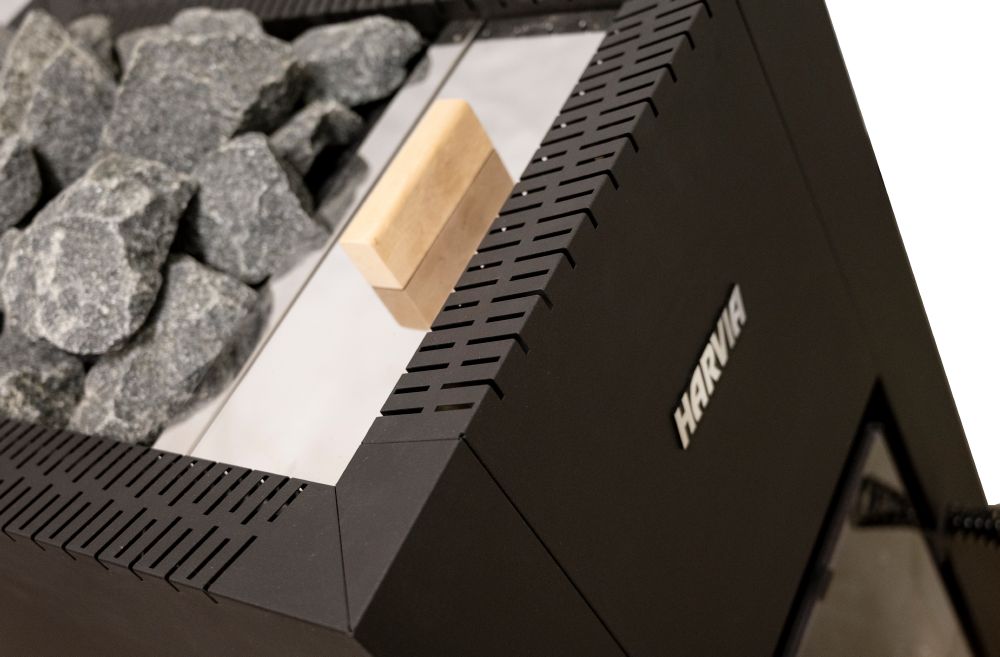 The heart of the heater is a fully updated GreenFlame ® fire chamber, which has been designed with clean combustion in mind. The new fire chamber reduces the particulate emissions generated by wood combustion by 20% and carbon monoxide emissions by 70%. The updated GreenFlame fire chamber is an element in Harvia’s determined development efforts towards cleaner combustion and emission reductions. As a long-term goal, Harvia has decided to cut the particulate emissions of wood-burning heaters by half.