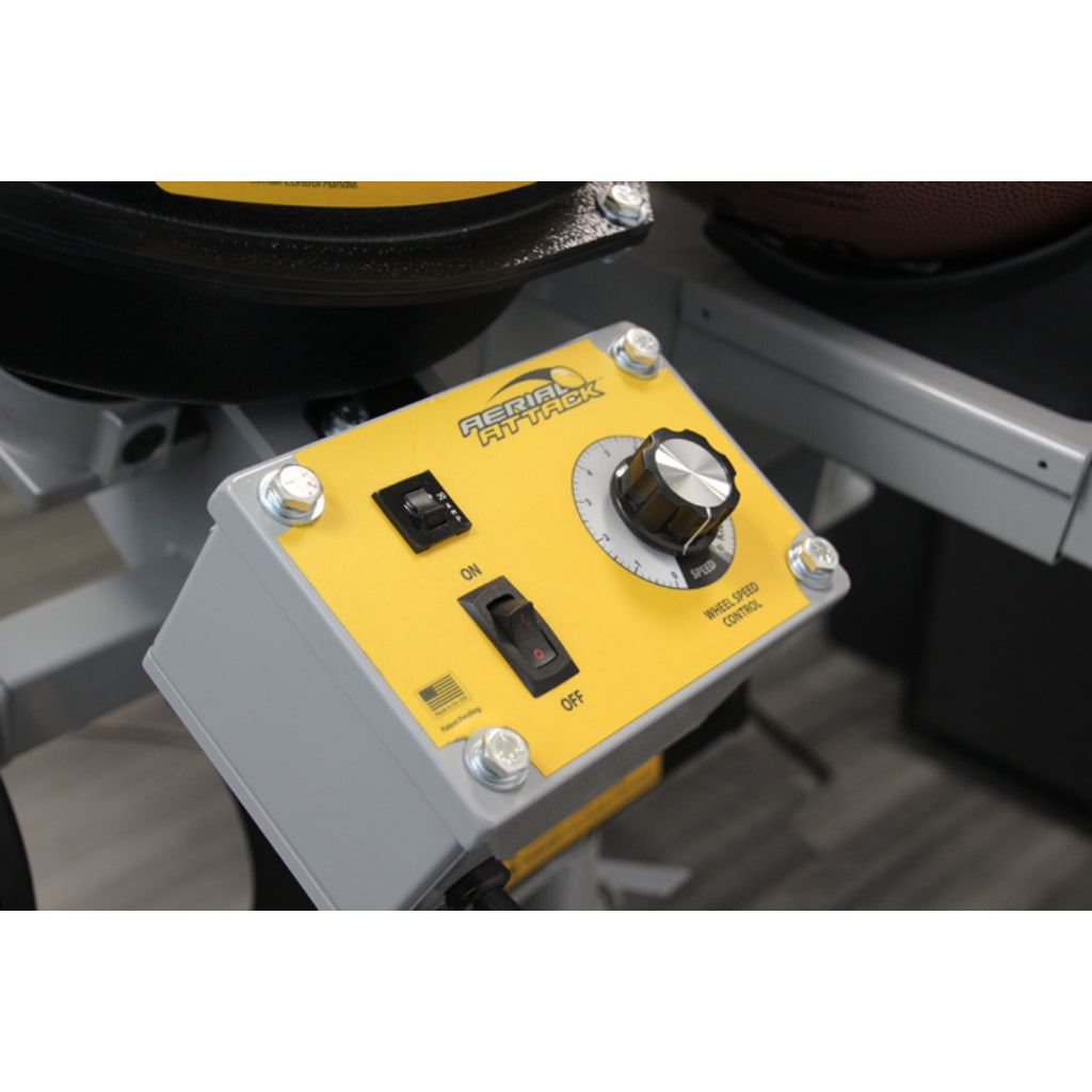 The Sports Attack Aerial Attack Football Machine is the ideal training solution for football programs seeking professional performance on a budget. Designed for precision and versatility, this football machine delivers right-footed deep spiral punts, end-over-end kickoffs, and both long and short passes for offensive and defensive drills. Its pivoting throwing head allows coaches to challenge defensive coverage and accurately target any location on the field, making it perfect for team practices, individual quarterback drills, and skill development sessions.