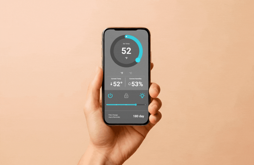 Touchscreen Controls with temperature, humidity, alerts & lighting adjustments